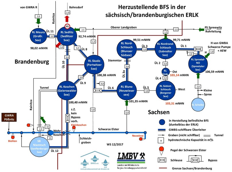 Die Wasserwirtschaft in den neu entstehenden und durch den Grundwasser-Wiederanstieg dynamischen Bergbaufolgelandschaften der Lausitz und Mitteldeutschlands erfordert die Entwicklung angepasster regionaler Bewirtschaftungskonzepte des Wasserhaushalts. Das GFI erstellt langfristige Planungen und Entwicklungskonzepte für lokale Objekte wie Seen oder Fließgewässerabschnitte aber auch für ganze Regionen. Dabei werden die regionalen Wasserhaushalte unter Berücksichtigung des Klimawandels und multifunktional (z. B. wasserwirtschaftliche, hydrogeochemische und sozioökonomische Aspekte) analysiert. Maßnahmen zur Mengen- und Gütesteuerung werden unter Berücksichtigung aktueller rechtlicher Vorgaben und Rahmenbedingungen entwickelt und empfohlen. Die für die Umsetzung von Güte- und Mengensteuerungsmaßnahmen notwendige Anlagentechnik und die Infrastruktur werden entworfen oder angepasst, Steuerungs- und Betriebskonzepte für die notwendigen Anlagen werden erarbeitet. Für die Umsetzung von Wasserbehandlungsmaßnahmen werden die Voraussetzungen vorbereitet, indem Antragsunterlagen für Genehmigungen, z. B. für wasserrechtliche Erlaubnisse erstellt werden.